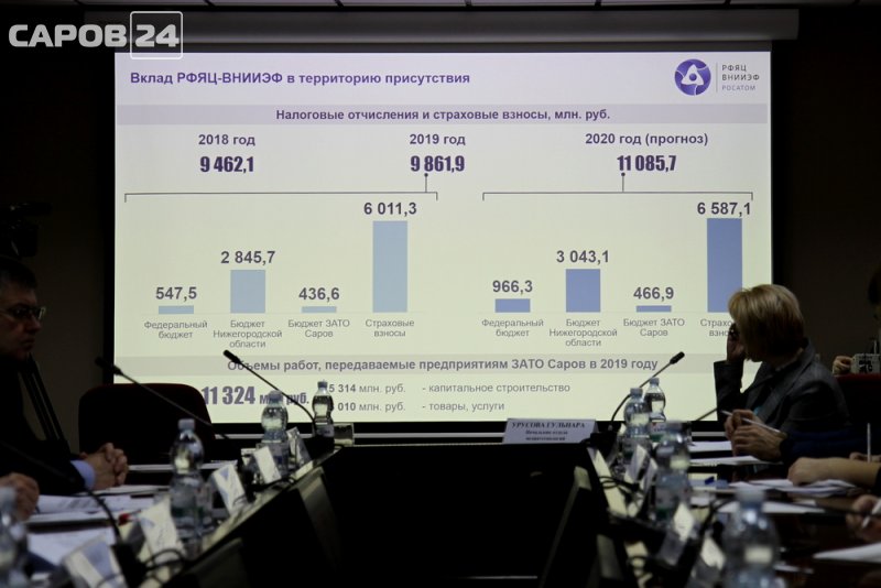За 2019 год ВНИИЭФ произвел налоговых отчислений на общую сумму почти 9 млрд 862 млн рублей. В том числе в бюджет Нижегородской области перечислено 2 млрд 845 млн рублей, в федеральную казну – 547 млн рублей, в бюджет Сарова – 436 млн рублей, страховых взносов – более 6 млрд рублей. Саровские предприятия получили от ядерного центра работ на сумму 11 324 млн рублей.