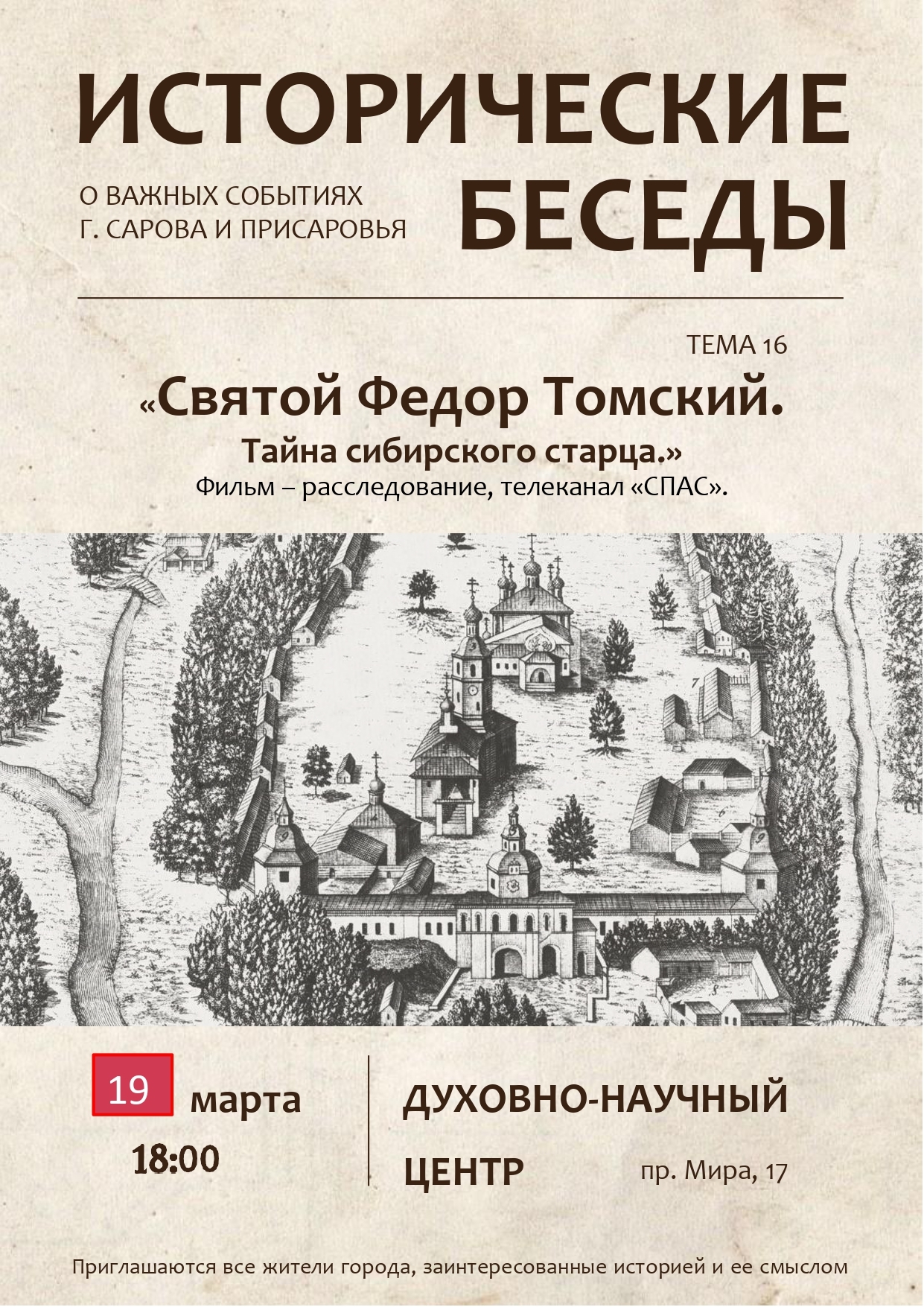 Участники посмотрят и обсудят фильм «Святой Федор Томский. Тайна сибирского старца».