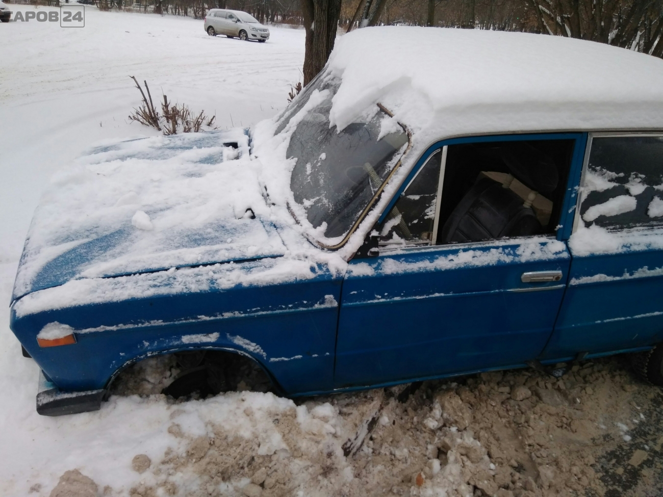 Сегодня около 15:00 на Театральном проезде обнаружили автомобиль без переднего колеса с опущенным передним стеклом. "Жигуль" въехал на бордюр и был брошен. Об этом в редакцию нашего сайта сообщили очевидцы. Информация об автомобиле уточняются в саровской полиции.