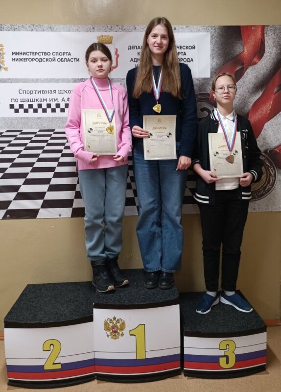 С 14 по 22 декабря в Нижнем Новгороде прошло первенство области по русским шашкам среди юниоров и юниорок до 20 и 27 лет.Отличных результатов на соревнованиях добились саровские кандидаты в мастера спорта из объединения «Шашки» Дворца детского творчества.Как рассказал Олег Васенькин, руководитель юных спортсменов, соревнования проводились по круговой системе в два круга с применением таблицы жеребьевки дебютов IDF из 780 позиций и с контролем времени: 25 минут + 10 секунд за каждый сделанный ход по системе микро-матчей из двух партий.В итоге победу в турнире среди юниоров до 27 лет одержал десятиклассник гимназии № 2 Михаил Ковалев.У юниорок две соперницы набрали одинаковое количество очков и поднялись на верхнюю строчку пьедестала почета. Одной из них стала шестиклассница школы № 17 Алиса Рубцова.Источник: Дворец детского творчества