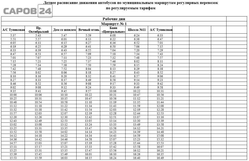 Летнее расписание автобусов в Сарове изменится с 1 августа
